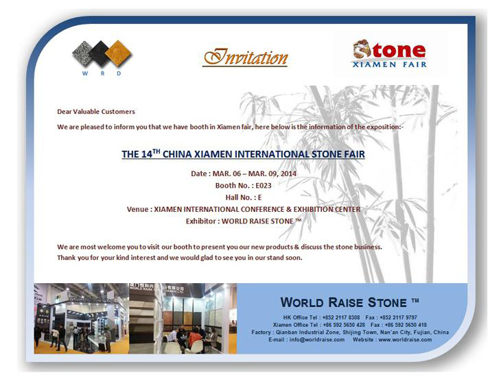 We will attend Xiamen Stone Fair during March 6-9, 2014